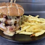 17,80€Buns, steak haché de boeuf, demi camembert pané, salade, tomate, oignons confits, sauce burger