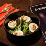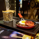 18,00€Steak haché, œuf au plat, sauce chorizo, oignons confits, Grana Padano, tranche de chorizo